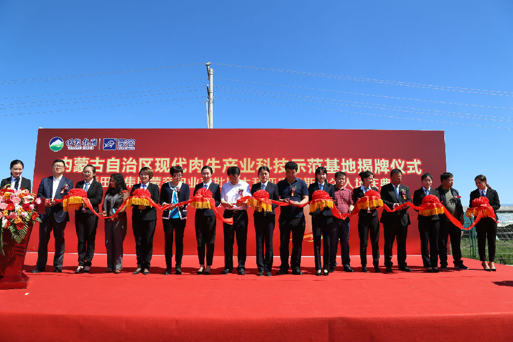 2016年6月7日,內(nèi)蒙古自治區(qū)現(xiàn)代肉牛產(chǎn)業(yè)科技示范基地揭牌儀式暨田牧集團(tuán)蒙容肉業(yè)首批澳大利亞安格斯種牛入場(chǎng)慶典儀式在土默特左旗蒙容牧場(chǎng)圓滿舉行!