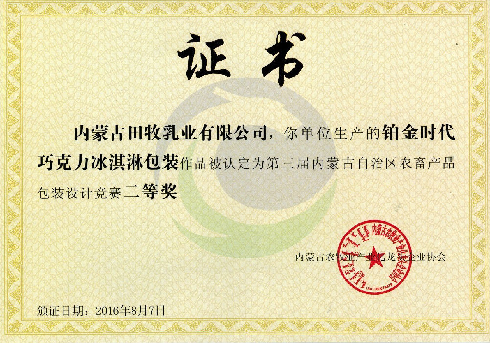 2016年8月7日,第四屆內(nèi)蒙古“名優(yōu)特”農(nóng)畜產(chǎn)品認(rèn)定成果與第三屆內(nèi)蒙古自治區(qū)包裝設(shè)計競賽成果發(fā)布會在呼和浩特舉行。田牧集團旗下的多款產(chǎn)品包裝在經(jīng)專業(yè)化的評選后,從眾多參評作品中脫穎而出,連獲多項設(shè)計嘉獎!此外,包括田牧金鉆、銀鉆鮮奶冰淇淋在內(nèi)的十余款田牧產(chǎn)品也被內(nèi)蒙古農(nóng)牧業(yè)產(chǎn)業(yè)化龍頭企業(yè)協(xié)會認(rèn)定為2016(第四屆)內(nèi)蒙古“名優(yōu)特”農(nóng)畜產(chǎn)品。