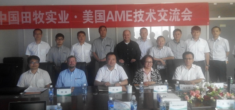 2014年8月8日,中國田牧實(shí)業(yè)股份有限公司與美國AME機(jī)械設(shè)備公司進(jìn)行愉快的技術(shù)交流。美國AME公司總監(jiān)Joanna Wang與高級顧問Doug Reuscher等國際友人與田牧實(shí)業(yè)總裁劉瑞先生及團(tuán)隊進(jìn)行了深入的技術(shù)交流與戰(zhàn)略合作展望。