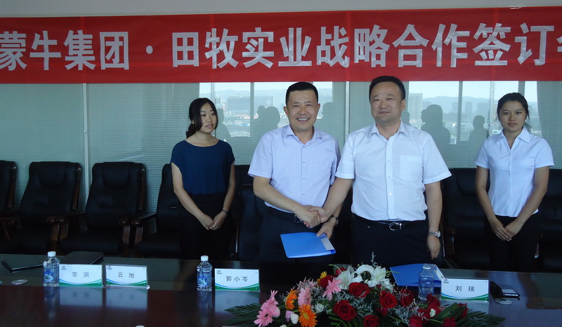 2014年8月6日,蒙牛乳業(yè)集團(tuán)與田牧實(shí)業(yè)簽訂了戰(zhàn)略合作協(xié)議,蒙牛乳業(yè)集團(tuán)原奶事業(yè)部總經(jīng)理郭小岑與田牧實(shí)業(yè)總裁劉瑞共同簽署了戰(zhàn)略合作協(xié)議書(shū)。蒙牛乳業(yè)集團(tuán)原奶事業(yè)部資源技術(shù)中心總監(jiān)付旺盛,戰(zhàn)略規(guī)劃總監(jiān)程曉飛,田牧實(shí)業(yè)副總裁云旭,財(cái)務(wù)總監(jiān)衛(wèi)寧等領(lǐng)導(dǎo)共同出席了簽約儀式。