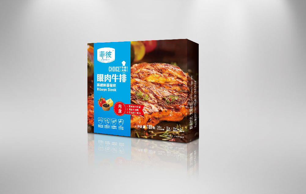 取自牛身中間的無骨部分,[眼] 是指肌肉的圓形橫切面,由于這個部分的肌肉不會經?;顒?,所以肉質十分柔軟、多汁,并且均勻地布滿雪花紋脂肪。肉眼牛排可切成薄片煎炒,亦可切成牛排燒烤。