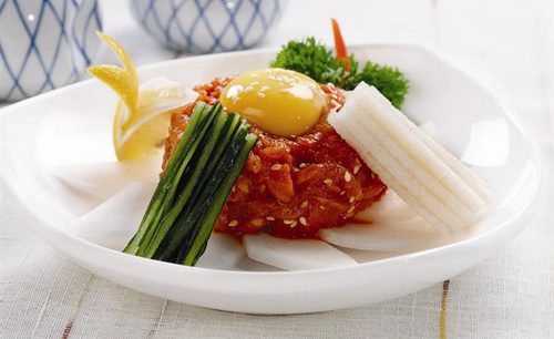 1.將牛里脊肉切成絲,用醋精拌勻,然后放在涼開水里洗凈醋精和血液,與芝麻和各種調(diào)料拌勻待用;